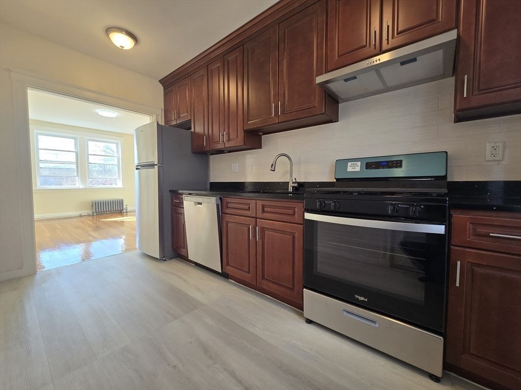 Newly renovated two-bedroom apartment available in Brookline, located near the Longwood Medical Area.The apartment features:- Fresh paint and gleaming hardwood floors throughout- A brand-new kitchen and an updated bathroom- Two generously sized bedrooms with plenty of natural light- Heat and hot water included in the rent- On-site laundry facilities